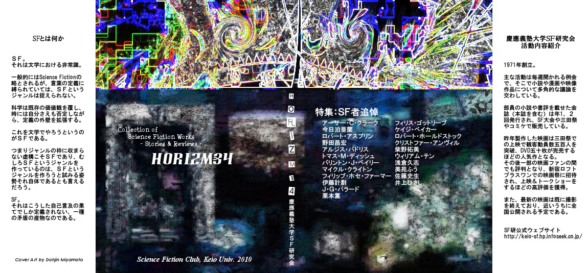 本誌では、「特集:SF者追悼」と題して、二〇〇八年一月から二〇一〇年五月にかけて亡くなったSF関係者の追悼を、書評やエッセイといった形で著し、その他、部員による創作短編を載せています。
